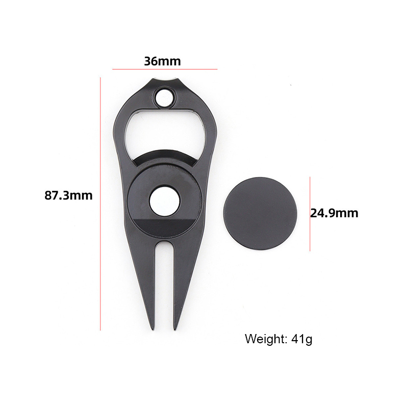 This sturdy metal tool fixes course greens, opens bottles, and includes a removable ball marker—all in one. Adorned with a female golfer design, it’s compact, practical, and stylish, ideal for on-course convenience or gifting to golf lovers.