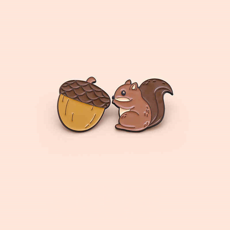 Product : Adorable Squirrel & Acorn Matching Enamel Pins