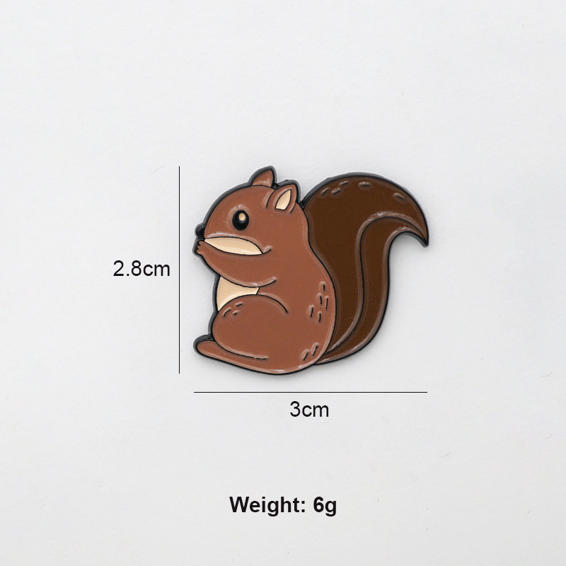 These matching pins have a rounded acorn shape and a compact squirrel silhouette, finished with soft, earthy-toned gloss. They adorn backpacks, lapels, or hats—perfect for nature lovers to pair (or split) as cute accents, adding whimsical forest charm to daily outfits or as a small gift.