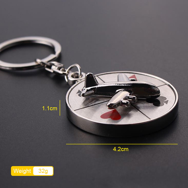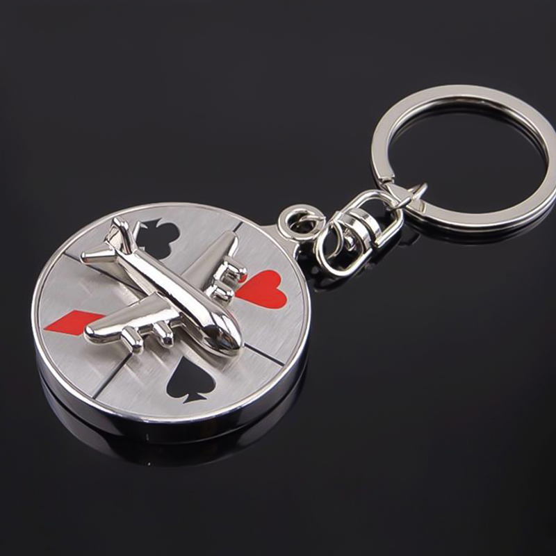 These rotatable metal keychains feature airplane and roulette designs, stylish, ideal for gaming lovers to organize keys or as unique, eye-catching accessories.