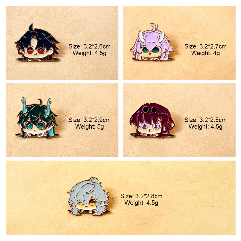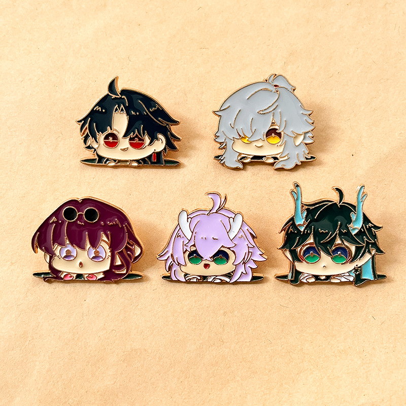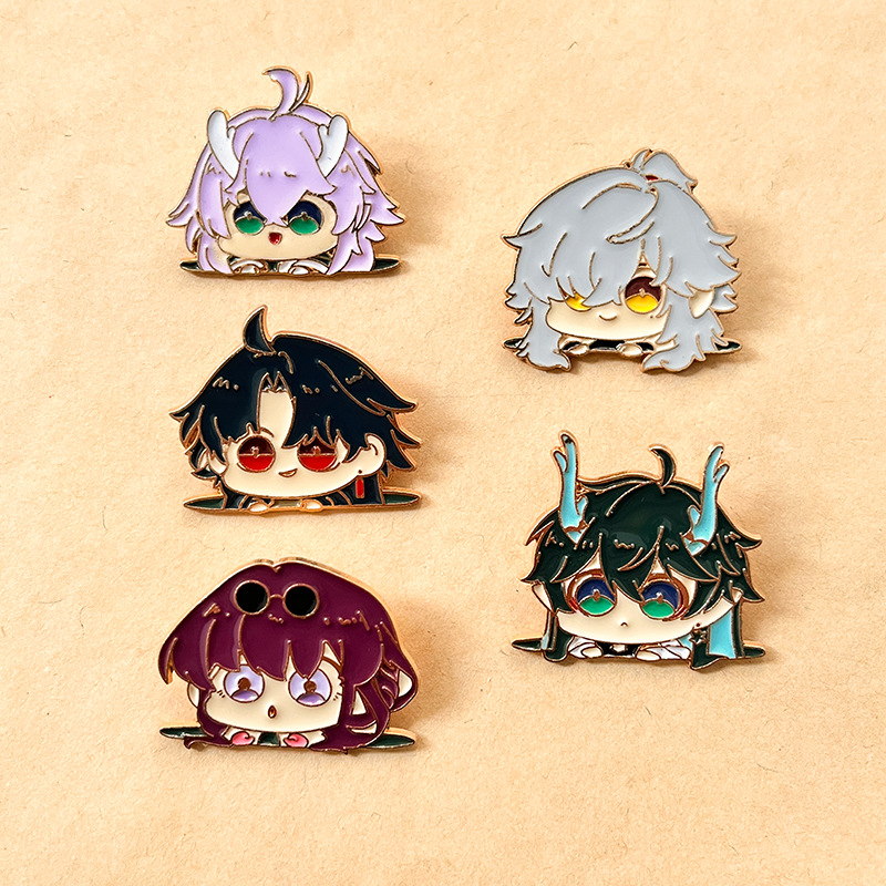 This pin set has 5 vivid chibi anime characters (with unique hairstyles/horns)—playful, fan-favorite flair. For anime lovers, it adds quirky charm to bags/jackets, ideal for daily styling or infusing outfits with lively, manga-themed character personality.