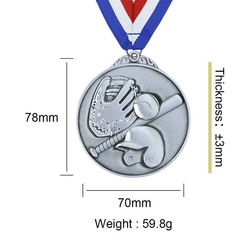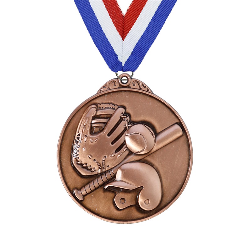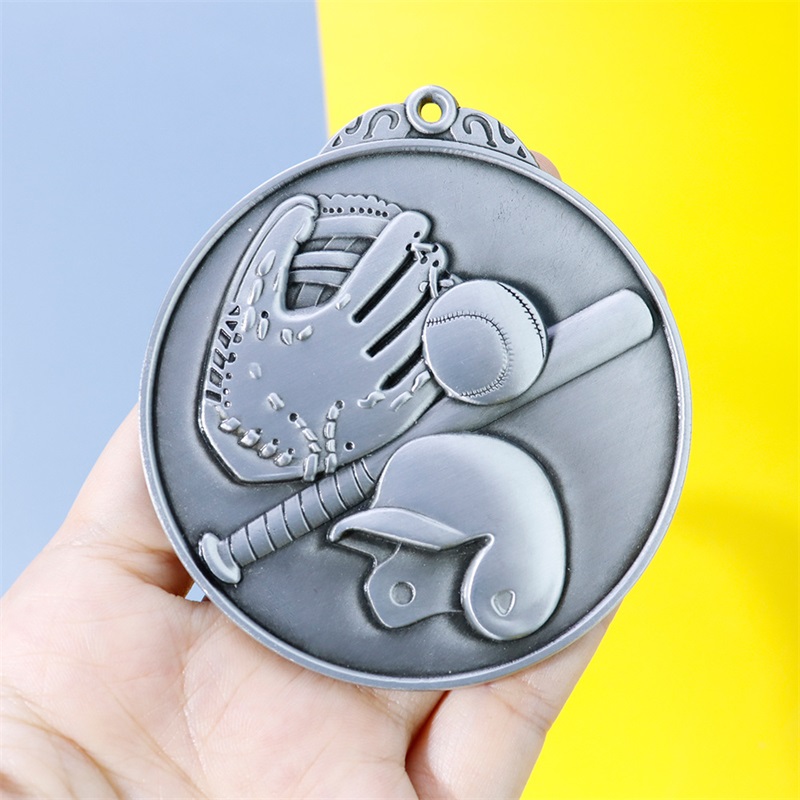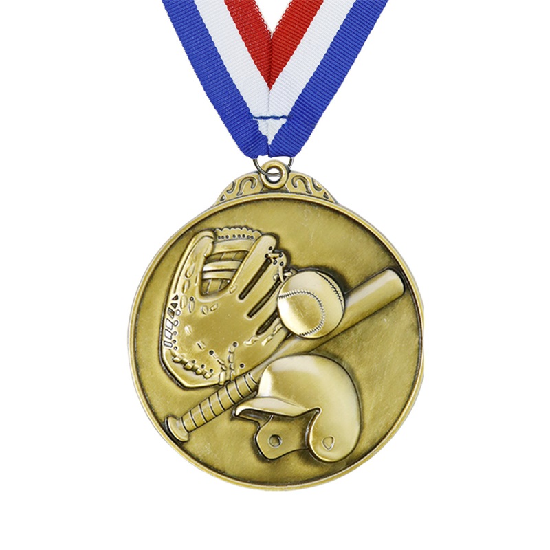 These circular baseball medals (antique gold, silver, copper) feature baseball gloves, bats, balls, and helmets. They’re for baseball tournaments, awarding athletes in sports ceremonies.
