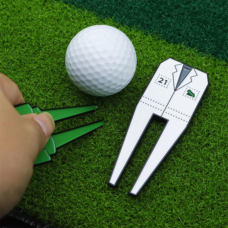 Boasting vivid Masters-style green jacket & suit designs, this sturdy divot tool repairs course greens effortlessly. Its unique golf-themed shape adds a playful, collectible flair—perfect for on-course use or gifting to avid golf fans.
