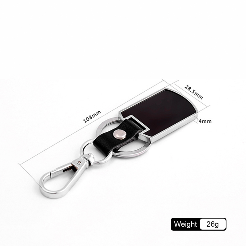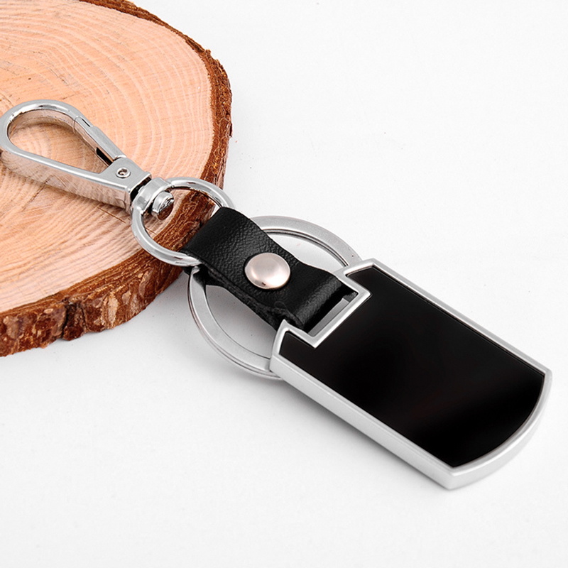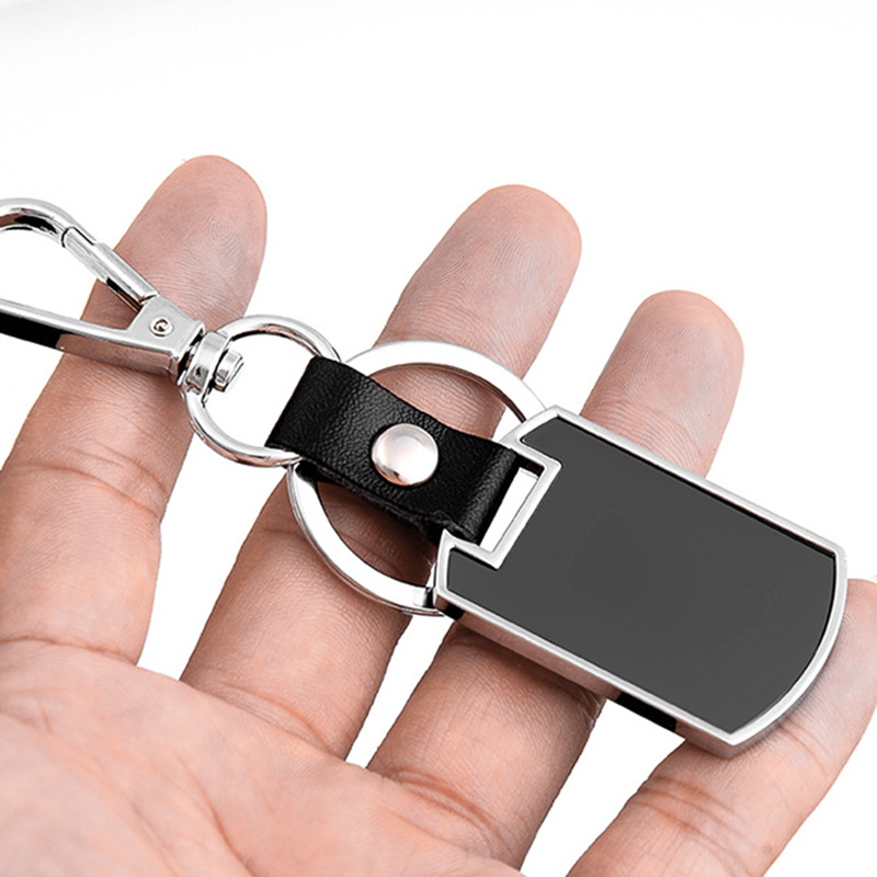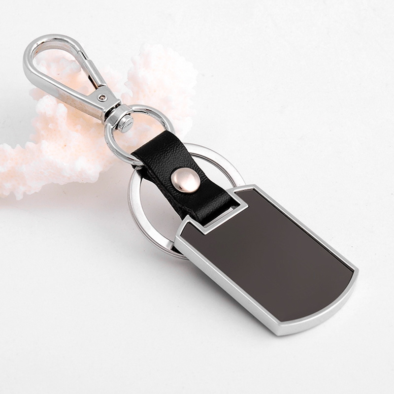 This leather metal keychain boasts high-quality black leather and polished metal, durable, stylish, perfect for those seeking a premium, long-lasting key accessory with a sleek design.