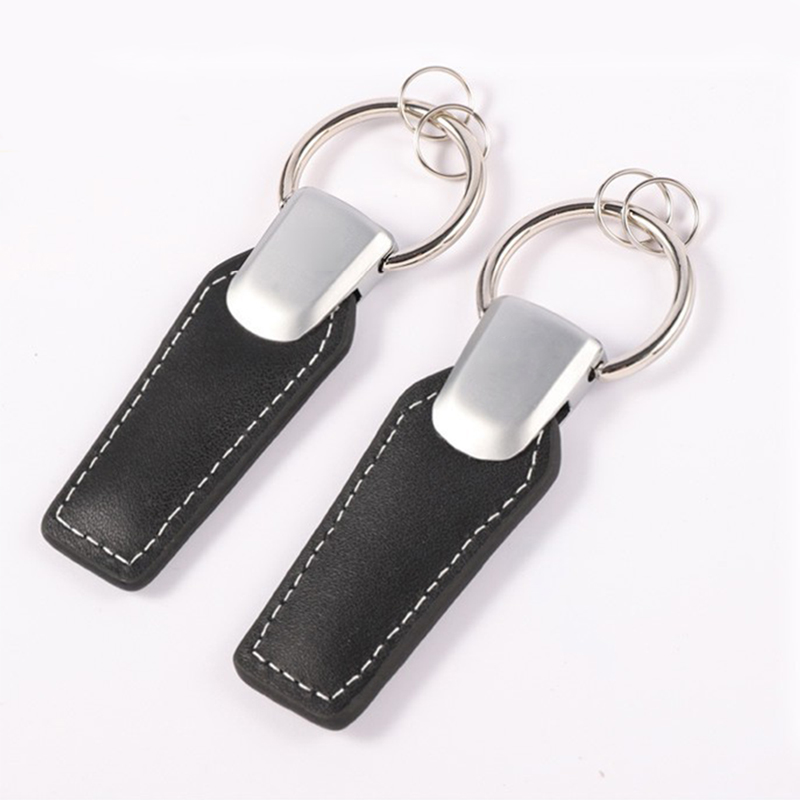 This keychain features a black leather strap with white stitching and a polished metal accent. With a sleek, minimalist style, it’s perfect for professionals as a daily key accessory, ideal for organizing keys or gifting to those who value understated, durable elegance in everyday use.