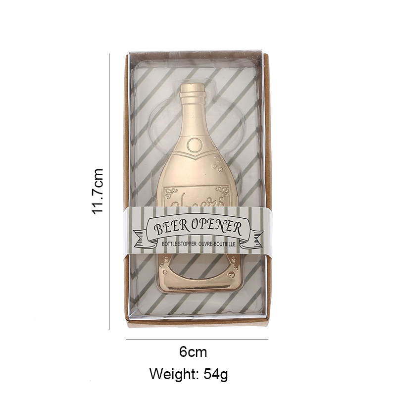 This 54g (11.7cm) rose gold opener mimics a champagne bottle, etched with "Cheers to You". It smoothly pops bottle caps, making it a festive favor for cocktail parties, weddings, or gatherings—packaged neatly for gifting.