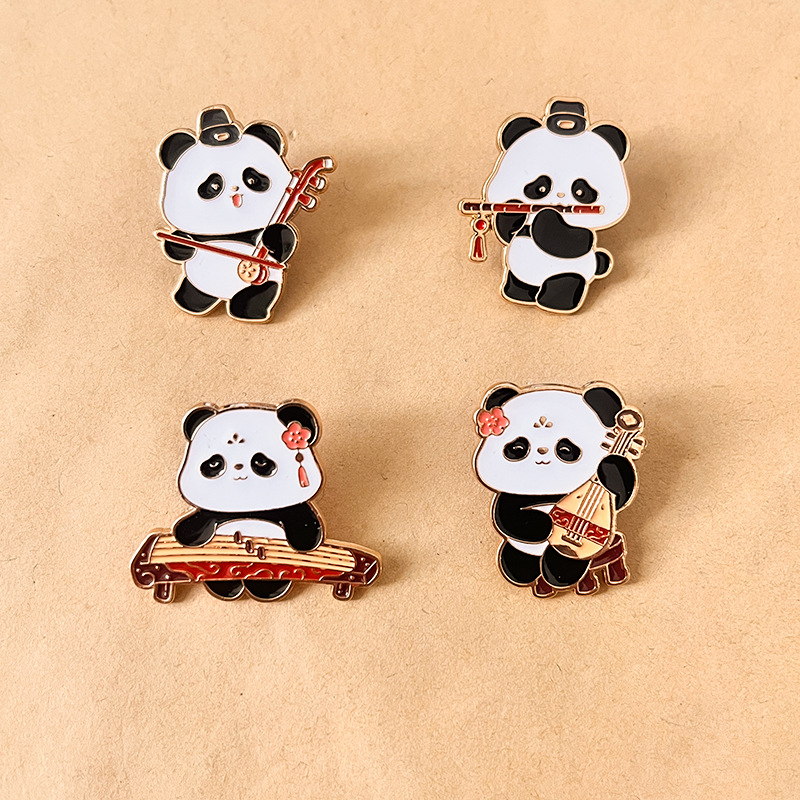 Product : Chinese Style Panda Musical Instrument Enamel Pins