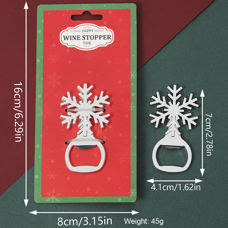 These 45g festive openers (gold/silver) feature Christmas motifs (snowflakes, trucks, trains). They easily open bottle caps, making them perfect holiday party favors, stocking stuffers, or decorative barware to add seasonal cheer to gatherings.