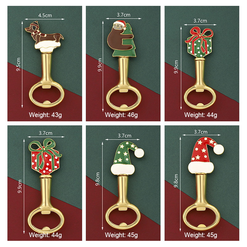 These 43–46g (9.5–9.9cm) gold-accented openers feature festive designs (Santa hats, gifts, sloths). They easily pop bottle caps, blending colorful enamel charm with practicality—ideal for holiday parties, gifting, or adding seasonal flair to daily use.
