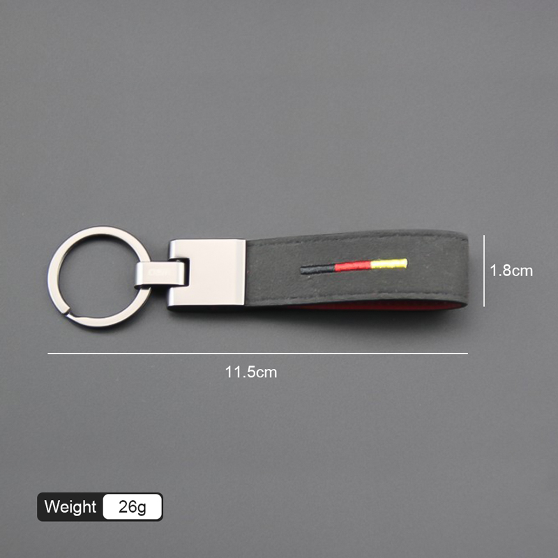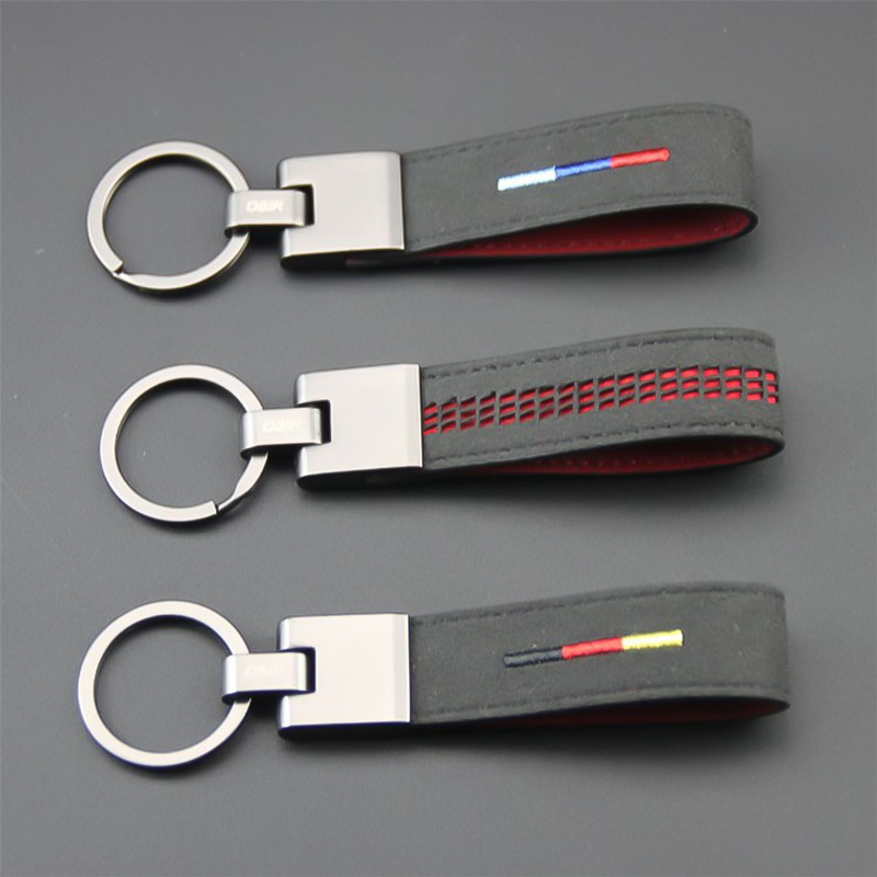 These leather metal keychains feature black leather with vibrant color stitching (red, blue, yellow), sturdy metal key rings, and exquisite craftsmanship. Stylish, durable, and ideal as gifts for car lovers, perfect for gifting on birthdays, holidays, or as a premium accessory for key organization.