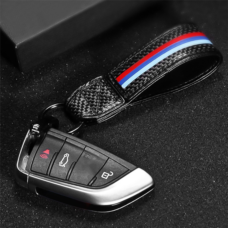 These carbon fiber keychains with color stripes are ideal for car enthusiasts. Perfect for attaching to car keys, they suit daily drives, auto shows, or as gifts for those passionate about automotive style, blending sporty design and practical use.