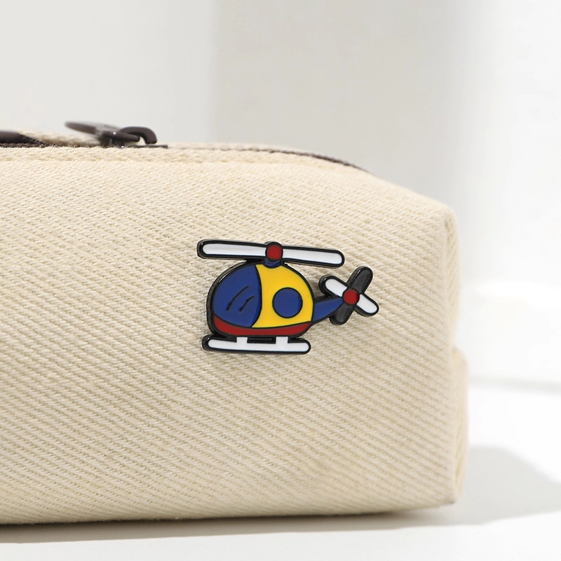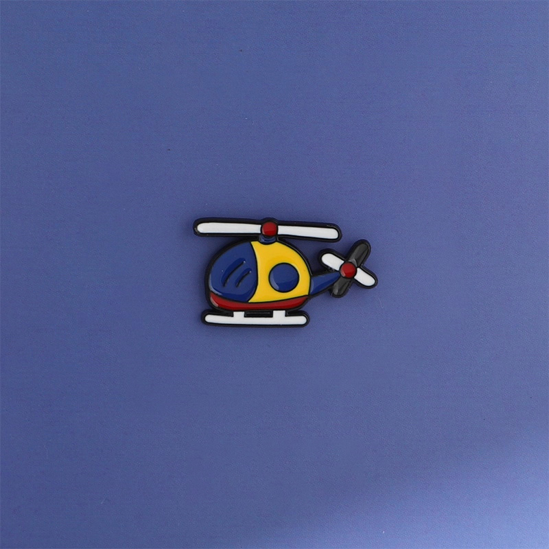This vibrant helicopter pin boasts bold blue-yellow hues and retro styling—whimsical aviation charm. For transport/plane fans, it adds fun flair to bags/jackets, ideal for daily styling or livening outfits with playful, nostalgic aircraft personality.