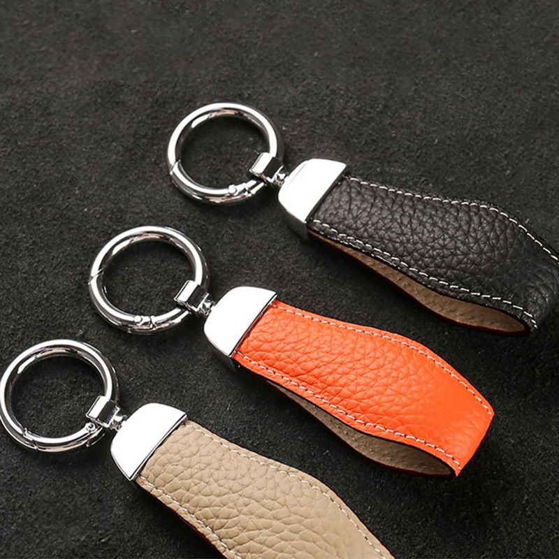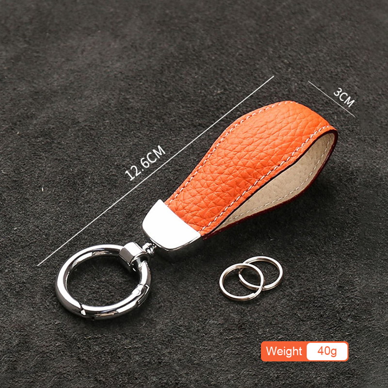 Boasting genuine leather straps in black, orange, and beige, paired with polished metal hardware, this keychain set exudes a sophisticated and minimalist vibe. It’s perfect for professionals to accessorize their keys daily, adding a touch of luxury to car or office keys, and fits seamlessly into both formal and casual scenarios.