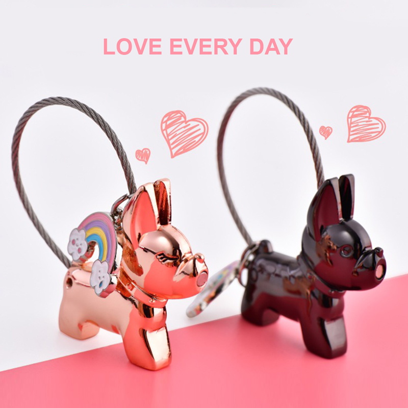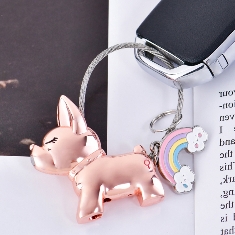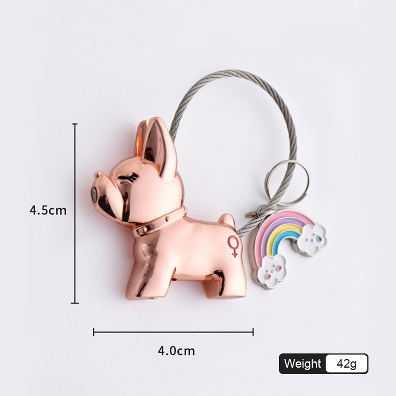 This keychain set showcases two adorable, glossy French Bulldog charms—one rose-gold with a colorful rainbow accent, one sleek black—with magnetic connection and sturdy cable loops. Boasting a playful, fashion-forward design, it’s ideal for couples as chic, matching key accessories, perfect for daily use or gifting, infusing keys with fun style while symbolizing sweet companionship.