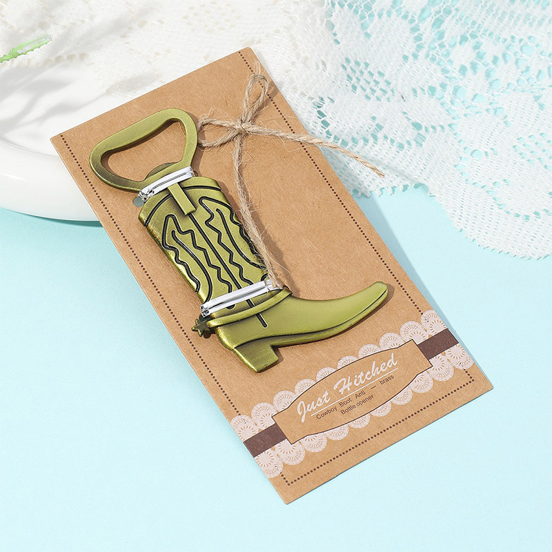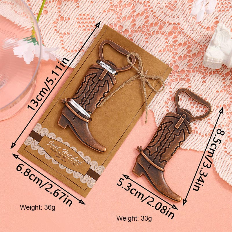 This 33g (8.5cm) vintage-style opener mimics a detailed cowboy boot (in bronze/green tones). It smoothly removes bottle caps, merging Western charm with practicality—ideal for gifting country fans, styling barware, or adding flair to ranch-themed gatherings.