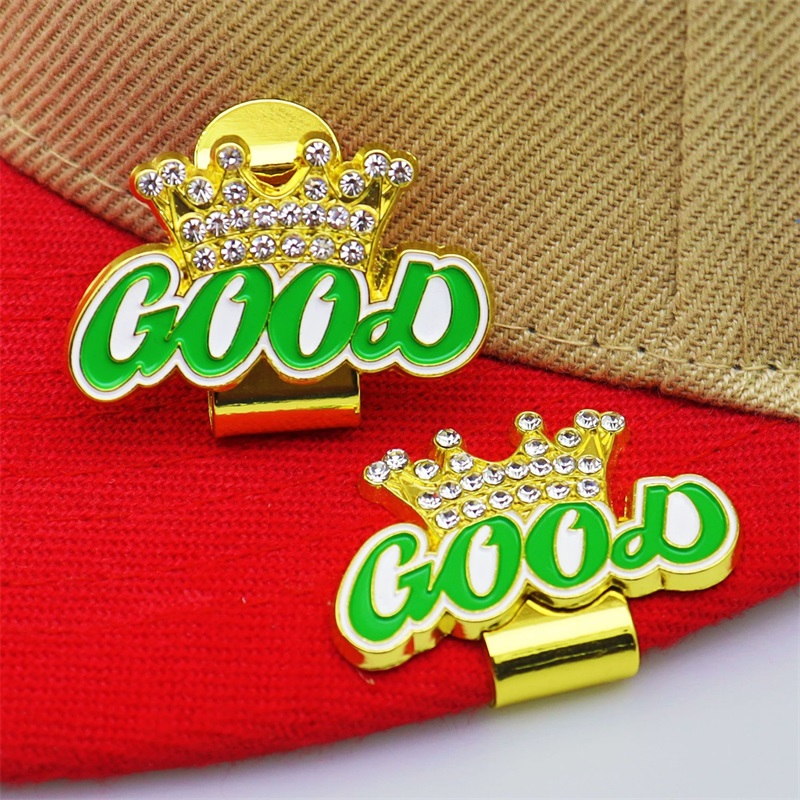 These hat clips mix two distinct designs: whimsical 3D cowboy character shapes (with vivid color details) and a sparkling "GOOD" letter shape (crowned with rhinestones). Both clip securely to caps, merging playful personality with eye-catching, unique styling.