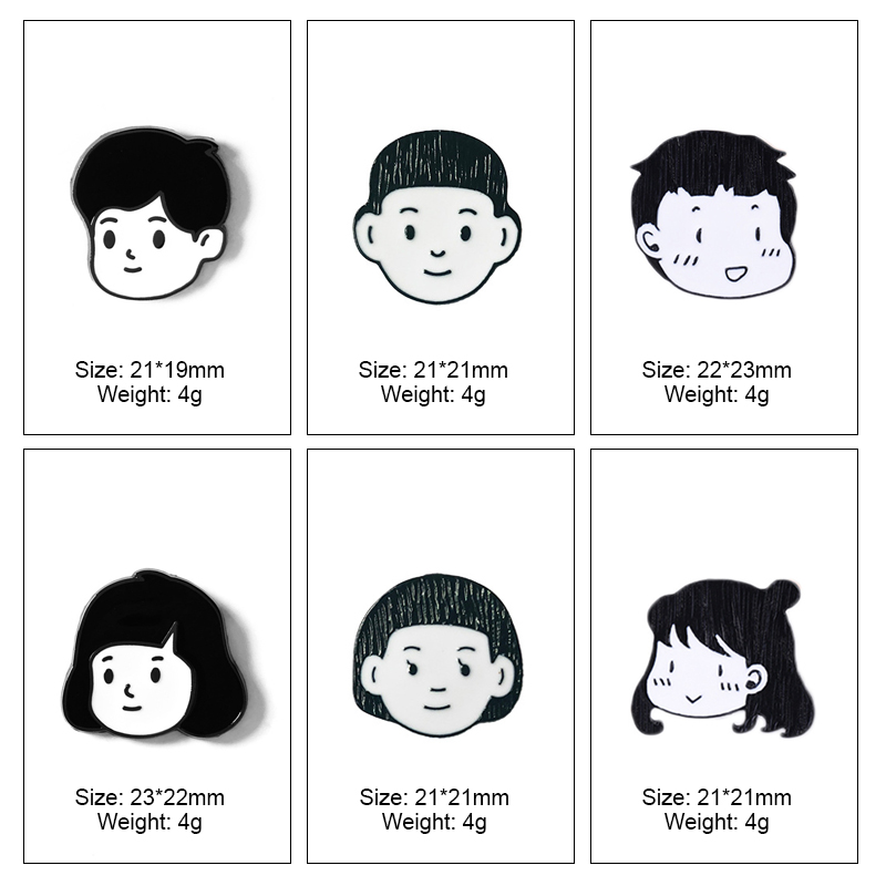 Product : Cute Cartoon Human Head Enamel Pin Set