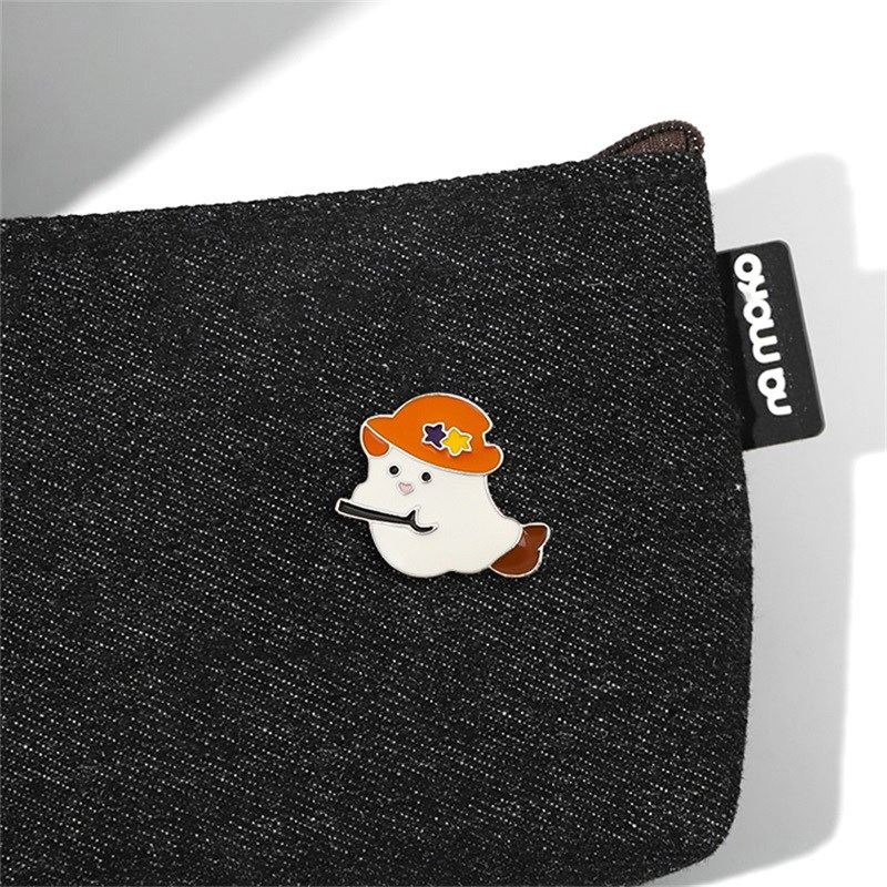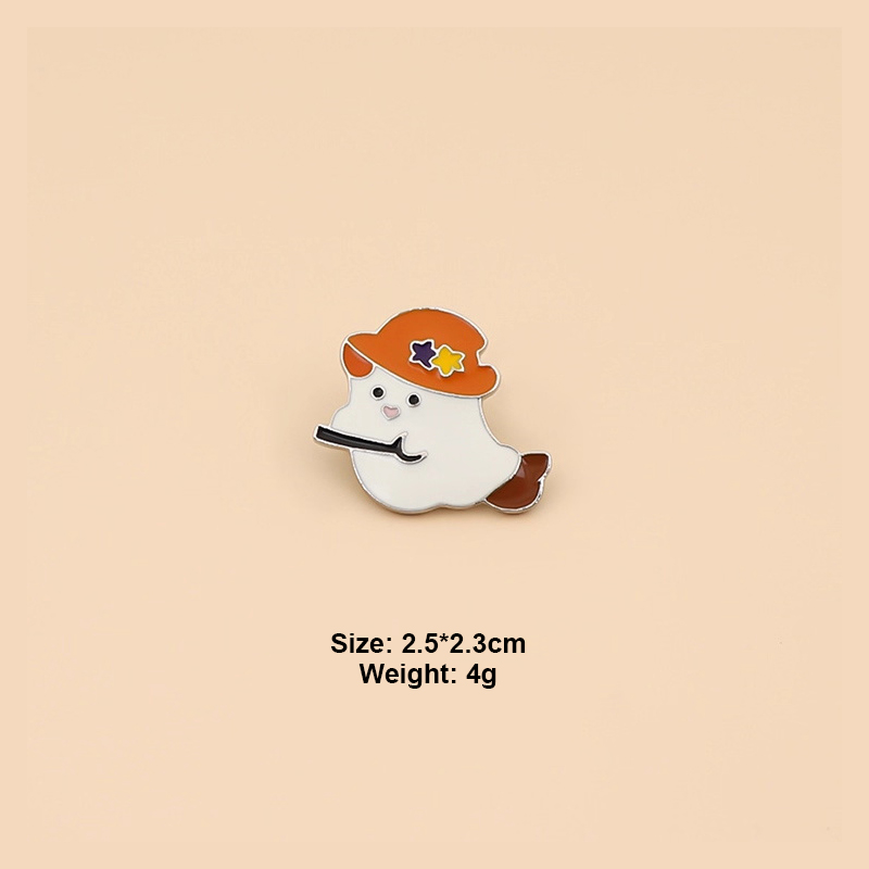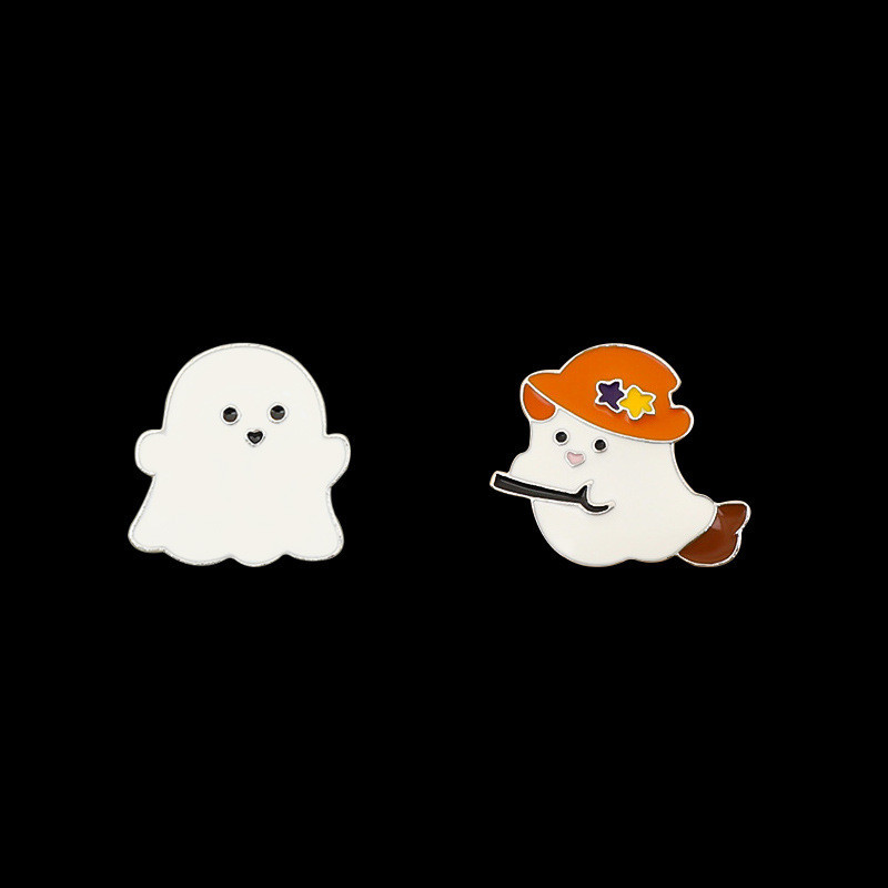 2 whimsical pins feature a simple sweet ghost (with a heart nose) and a witch-hat ghost (wielding a broom)—blending gentle spooky vibes with cute Halloween charm. Perfect for adding festive flair to bags/jackets or collecting as lighthearted Halloween keepsakes.