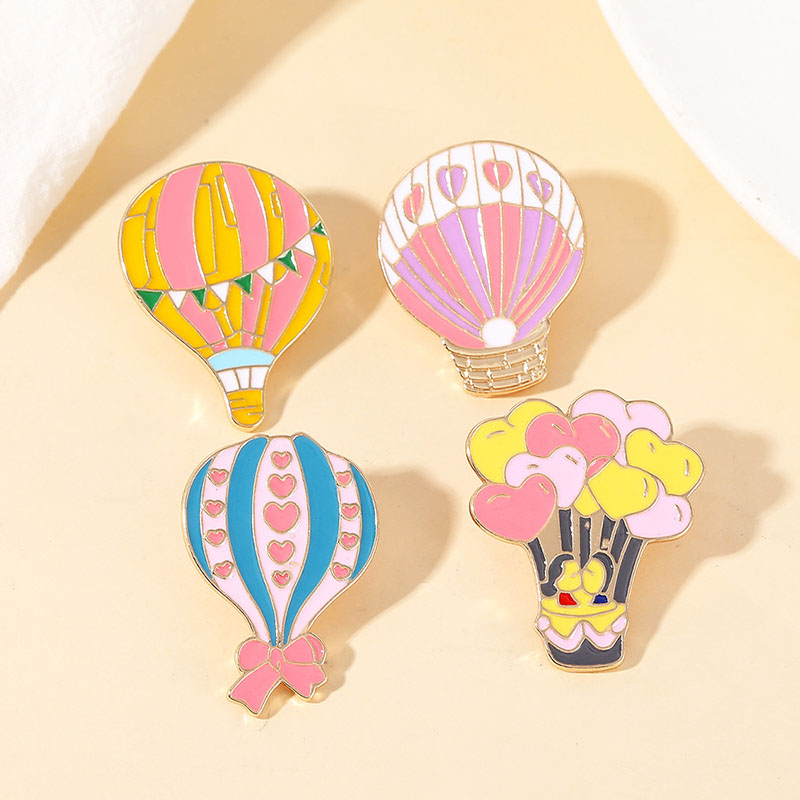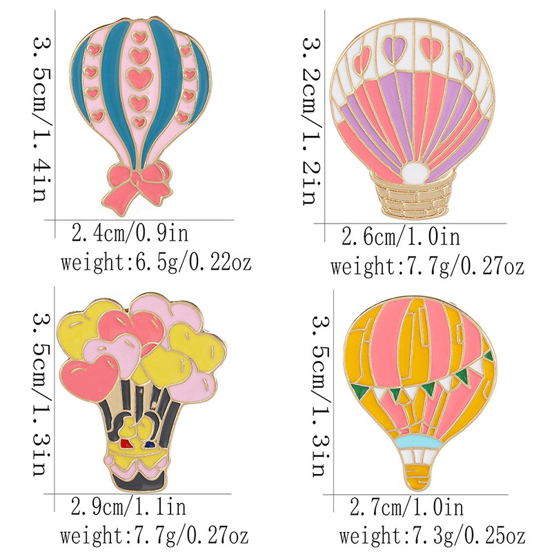 This hot air balloon pin set has 4 playful designs (striped, heart-patterned, heart-bundle balloons)—pastel, romantic nods to travel. For travel/romance fans, it adds cheerful flair to bags/jackets, ideal for daily styling or charming sweet travel-themed accessory decor.