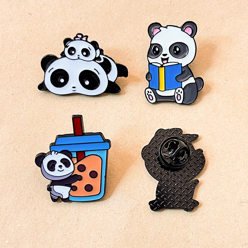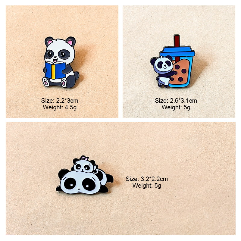 6 whimsical panda pins (with headphones, reading, napping, boba, scooter, popcorn, skateboard) — vivid enamel, lively expressions. Perfect for adding cute flair to bags/jackets; ideal for panda lovers’ playful collectibles.