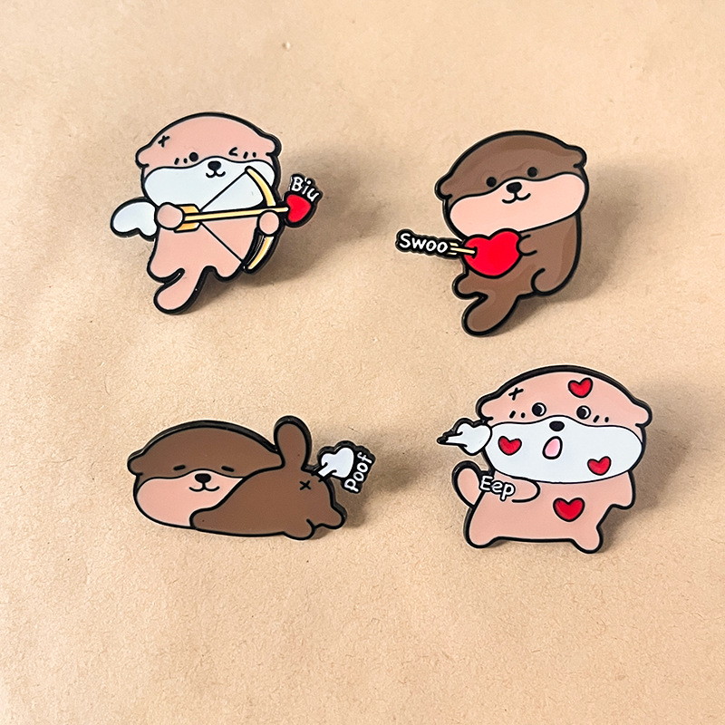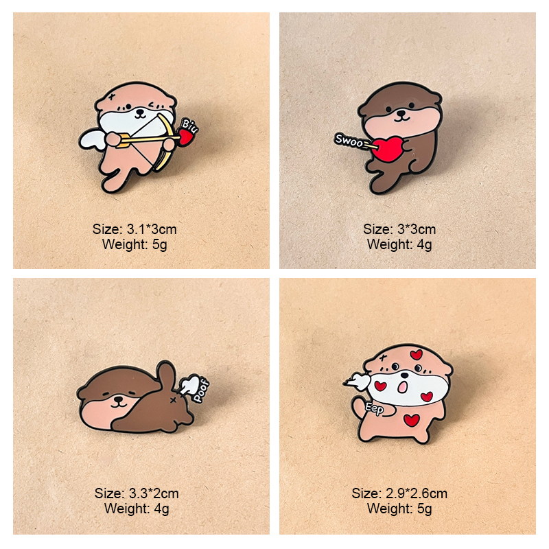 This otter pin set has 4 whimsical designs (silly "Poop" pose, cupid arrow, heart-eyed) with fun phrases—cheerful, quirky charm. For animal lovers, it adds cute flair to bags/jackets, ideal for daily styling or infusing outfits with playful, adorable otter-themed personality.