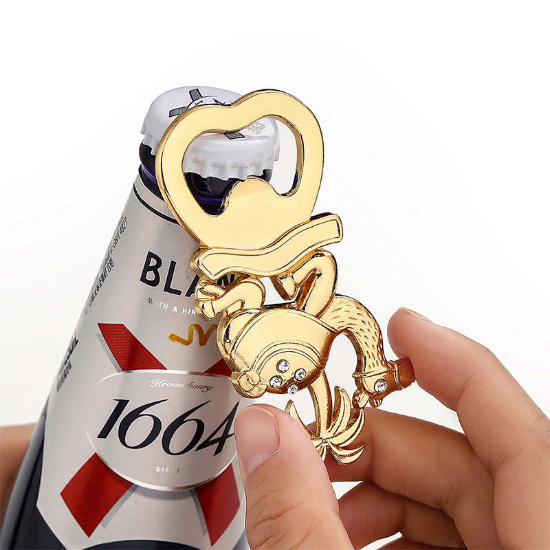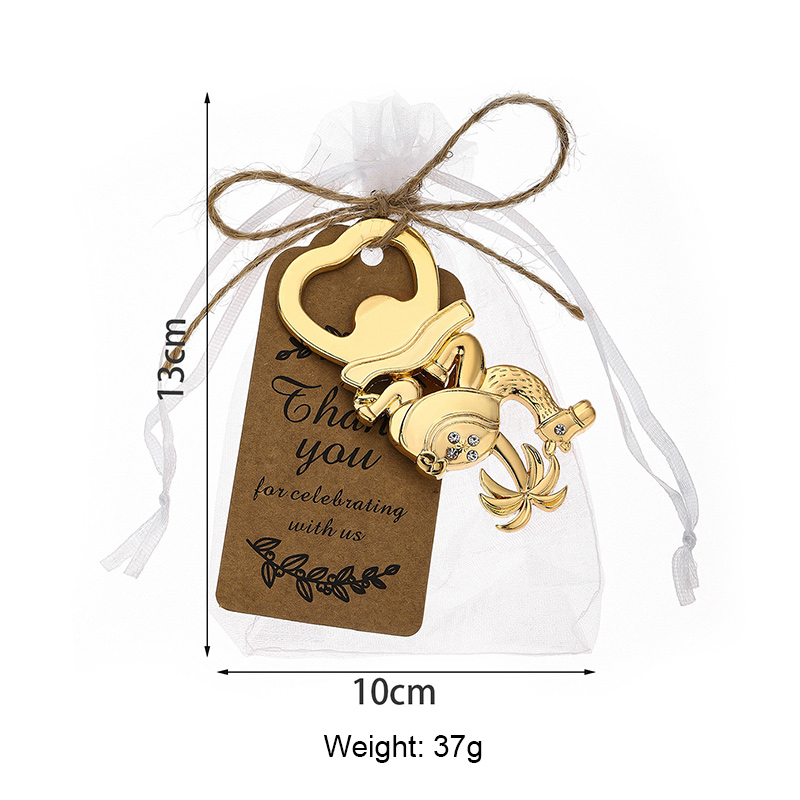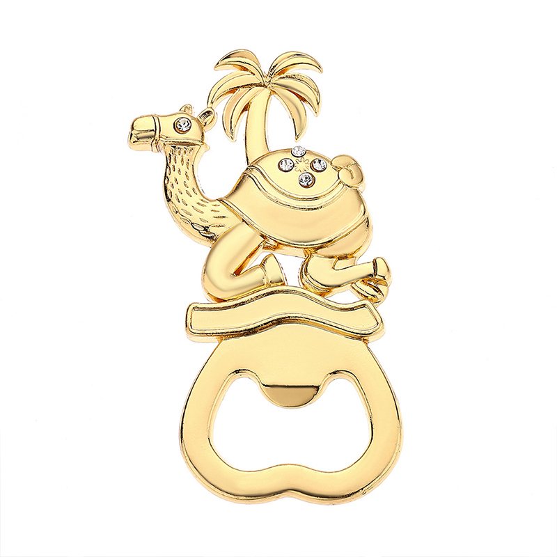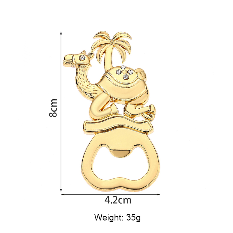 This 35g (8cm) gold opener features a detailed camel + palm tree design (adorned with small crystals) and a heart-shaped bottle opener. It pops caps smoothly, blending exotic desert charm with glamorous style—ideal for Arabian-themed parties, travel events, or a unique gift for decor lovers.