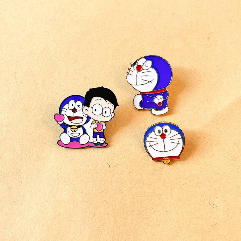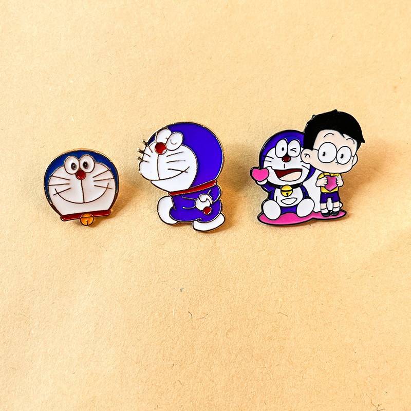 3 charming Doraemon designs (with Nobita, heart details) — nostalgic, playful flair. Perfect for anime fans to add cute style to bags/jackets; ideal for daily wear or classic cartoon collectible decor.