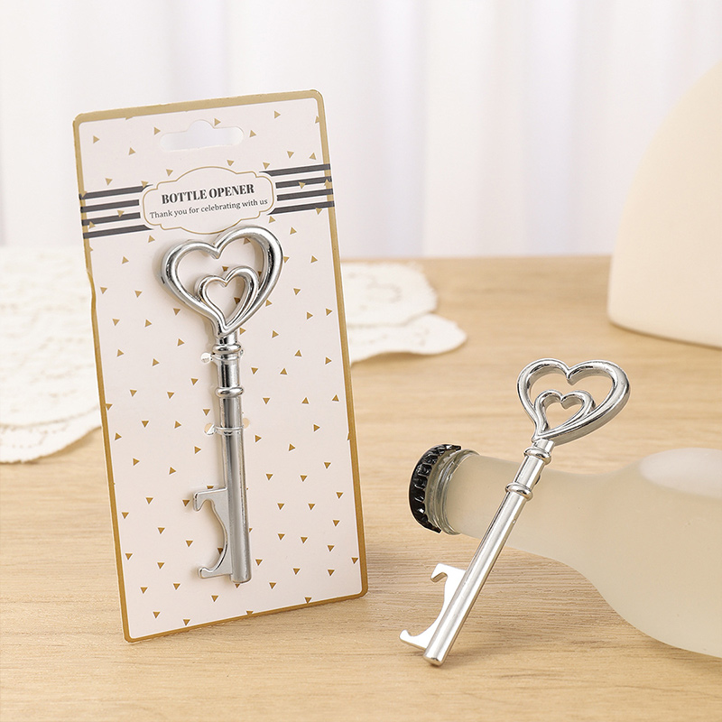 This 38g (16cm) opener is shaped like a vintage key with a double-heart handle (polished silver finish). It pops caps smoothly, blending romantic charm with decorative flair—ideal for engagement parties, Valentine’s events, or a heartfelt gift for love-themed decor lovers.