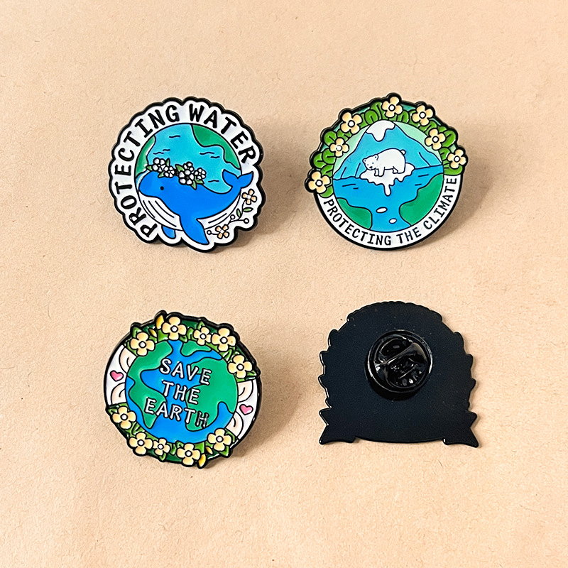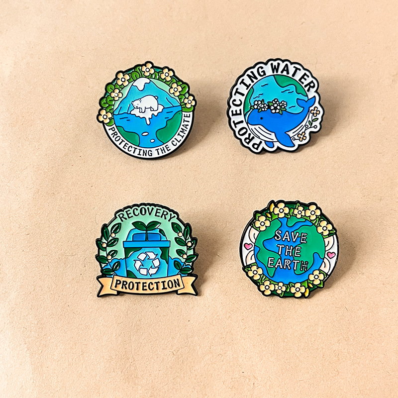 This eco-advocacy pin set has 4 glossy enamel designs (recycling, climate action, water protection, "Save the Earth")—vibrant, hopeful nods to environmental care. For eco-supporters, it adds meaningful flair to bags/jackets, ideal for green styling or advocacy-focused accessory decor.