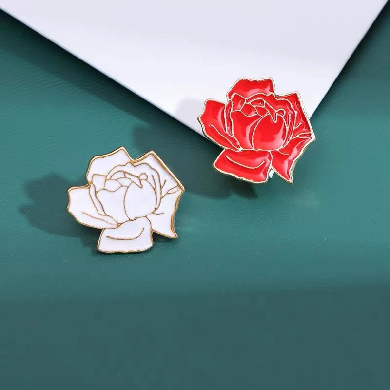 Crafted with smooth enamel and gold metal outlines, these pins feature a vivid red rose and a delicate white rose—blending timeless floral charm with polished, refined styling. Perfect for adding romantic flair to bags/jackets or gifting as graceful botanical keepsakes.