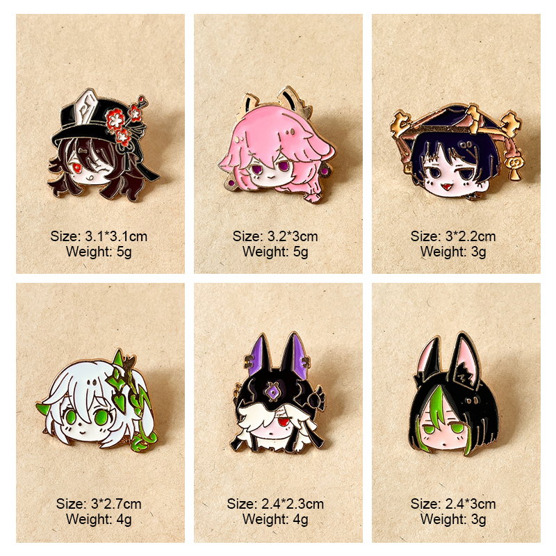 These Genshin Impact chibi pins showcase beloved characters (e.g., Nahida, Yelan) in cute, vivid enamel designs. Ideal for fans to infuse playful fandom charm into backpacks, outerwear, or lanyards—perfect for game-themed styling or collectible accessory decor.