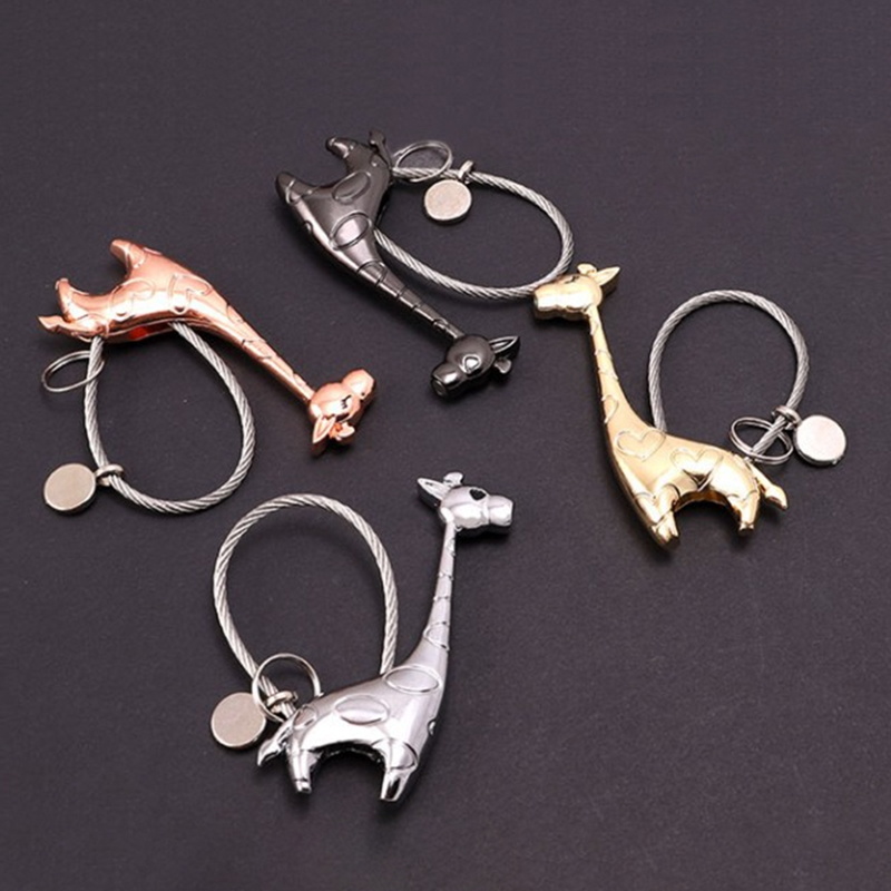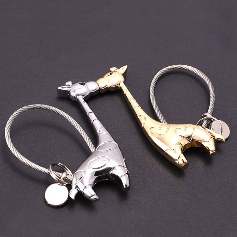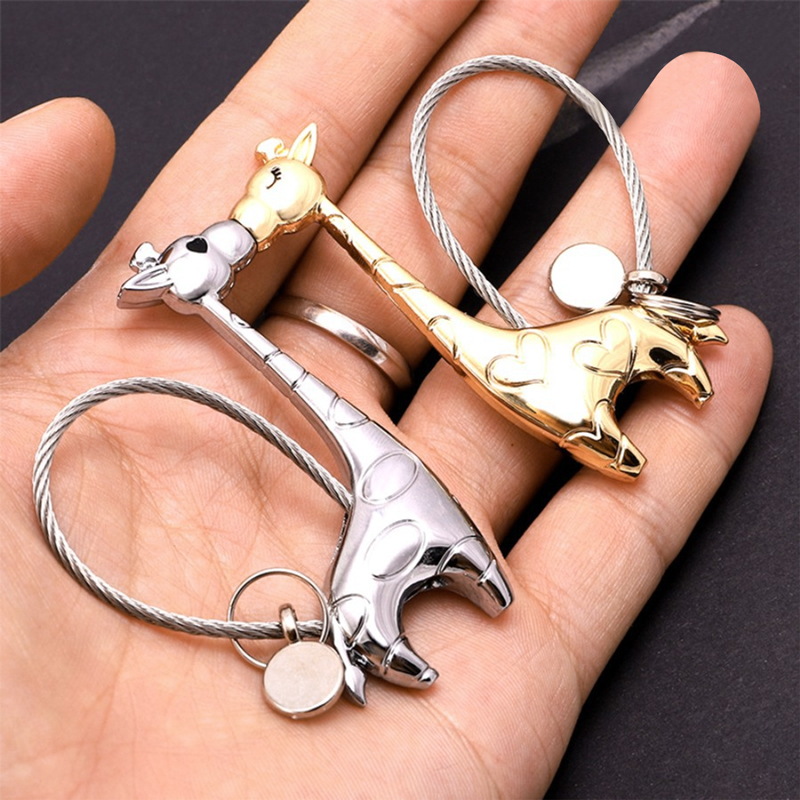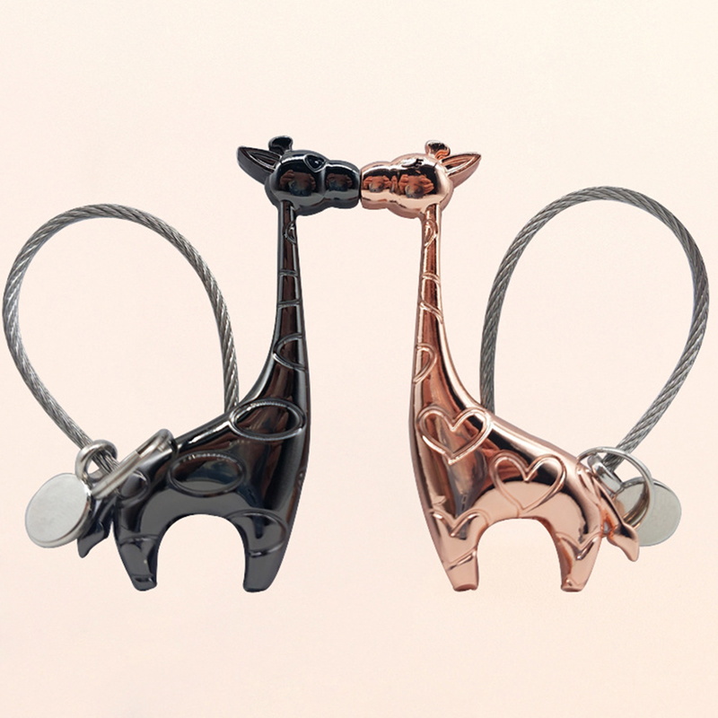 Made of metal, these keychains come in rose gold, black, gold, and silver, featuring cute giraffe designs with cable straps. They’re perfect for couples to organize keys, adding a stylish, whimsical touch, and are great for gifting or daily use in romantic and animal-loving lifestyles.