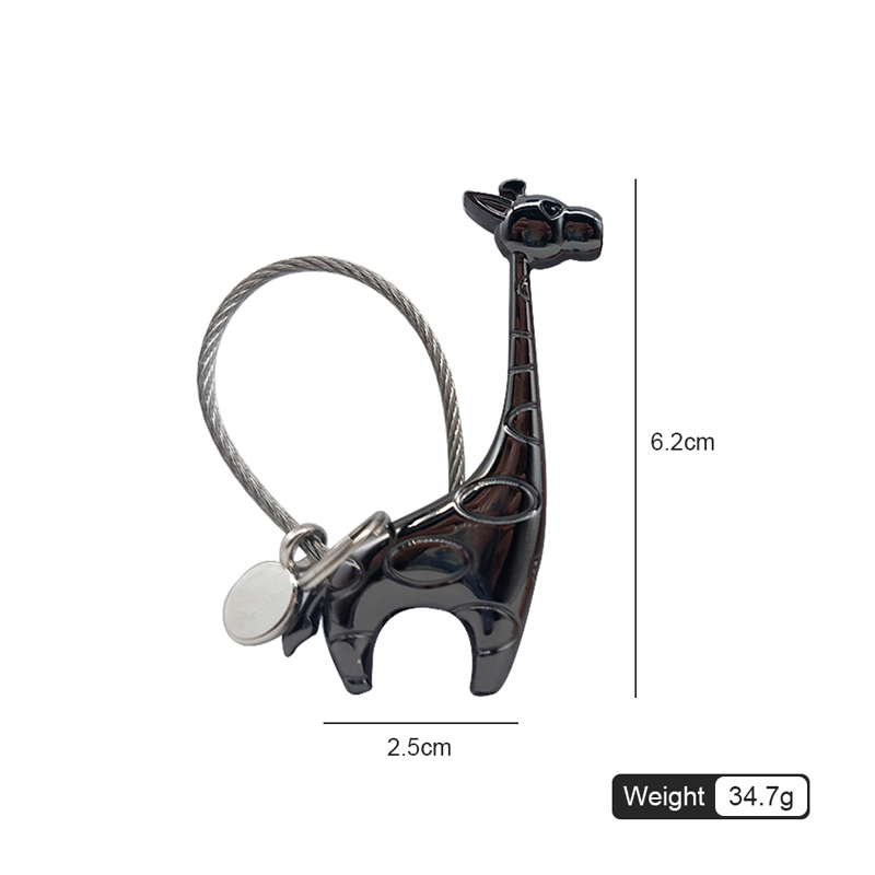 Crafted from metal, these keychains showcase giraffes in rose gold, black, gold, and silver, with cable straps. Their whimsical design adds a creative flair, perfect for couples to organize keys, gift to animal lovers, or add a playful touch to bags in daily life.
