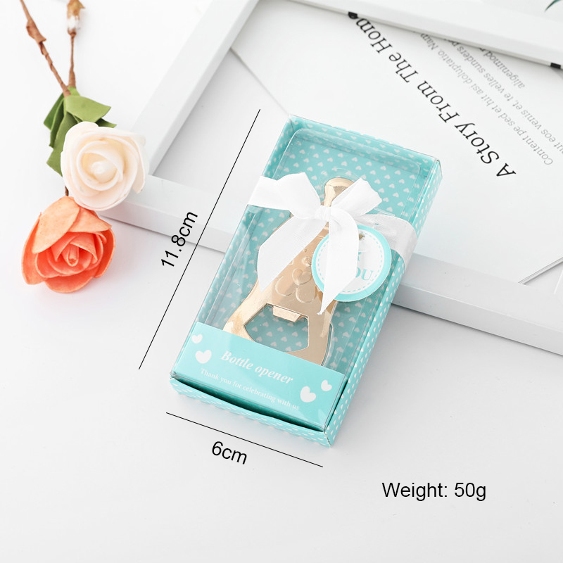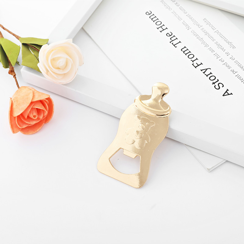 This 50g opener is shaped like a glossy gold baby bottle (with a teddy bear design). It pops caps smoothly, blending cute baby-shower charm with elegant decor—ideal for gender reveals, baby celebrations, or a sweet gift for new parents.