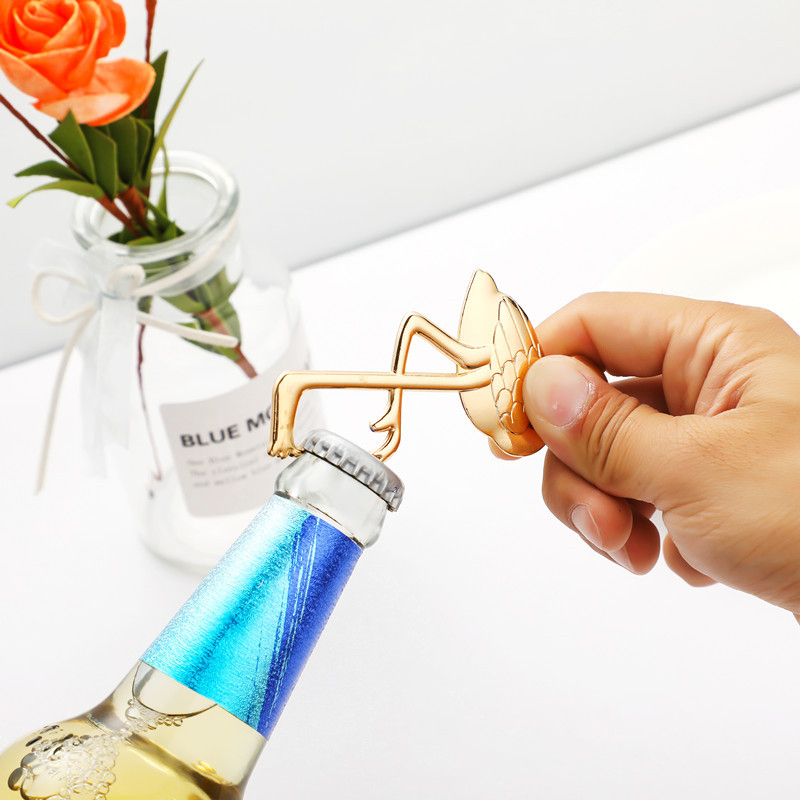 This 48g (11.5cm) opener is shaped like a glossy gold flamingo with detailed feather textures. It pops caps smoothly, blending tropical charm with chic decor style—ideal for luaus, summer weddings, or a playful gift for tropical-themed home lovers.