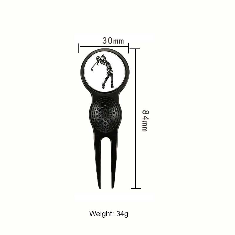 This 84mm (34g) divot tool features a stylish golf player silhouette (black finish) with a textured golf-ball grip area. Durable, functional for green repairs, and designed to mirror the sport’s spirit—perfect for golfers seeking gear that matches their passion.