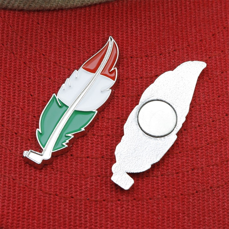 These pins feature feather (red-green-white tones, shiny metal trim) and golf ball (hole-detailed) silhouettes. They double as cap/bag decor (adding chic sporty charm) and golf ball markers—practical, stylish picks for golf lovers to elevate accessories and on-course convenience.