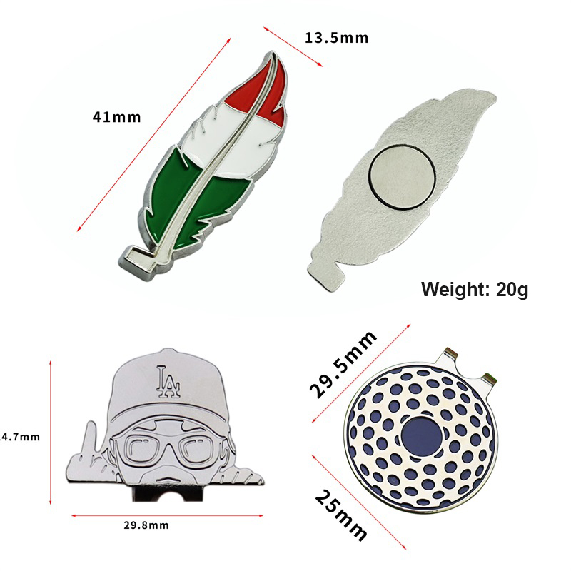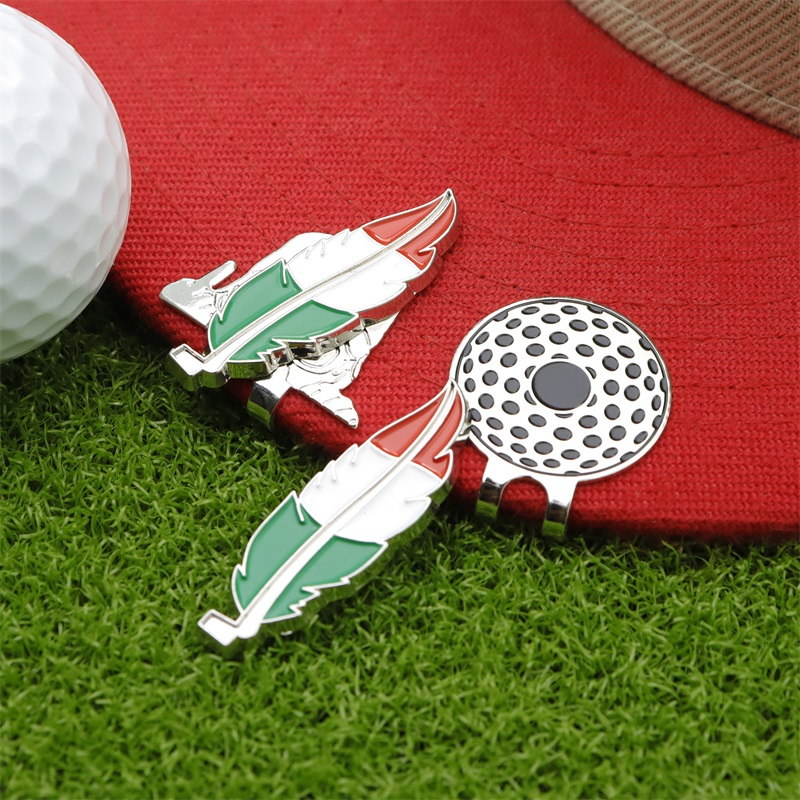 Stylish Golf AccessoriesFeaturing feather/golf ball shapes, red/green/white accents, and shiny metal borders, these double as golf markers & cap/bag decor—ideal for golf lovers to add chic, functional flair.