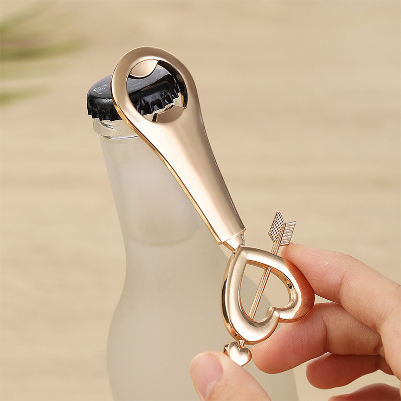 This 35g (10cm) opener features a romantic heart-and-arrow design in rose gold/silver. It smoothly opens bottle caps, making it ideal for wedding favors, Valentine’s gifts, or adding a sweet, decorative touch to date-night barware.