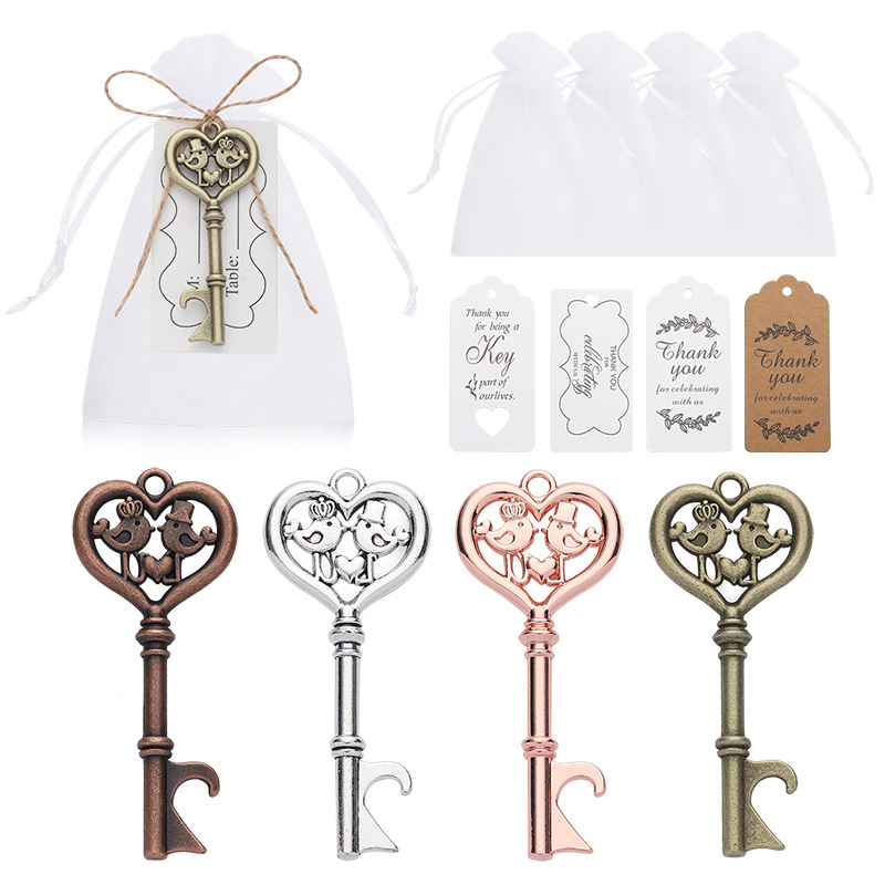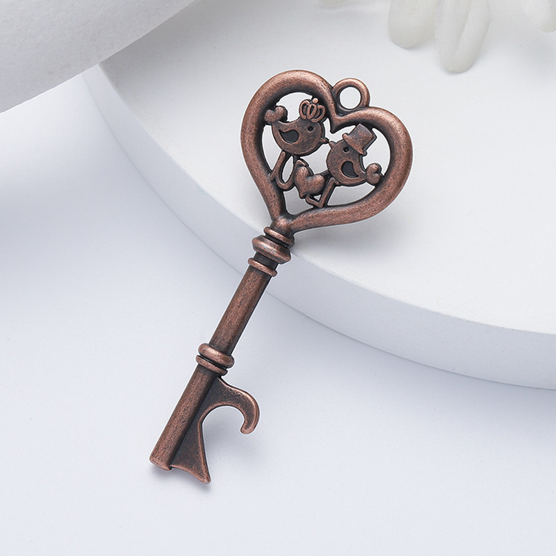 This 18g (7.1cm) opener mimics a heart-topped key, featuring a cartoon couple (king & queen). Available in bronze/silver/rose gold, it pops caps easily—ideal for fairy-tale weddings, engagement parties, or a whimsical gift for romantic gathering attendees.