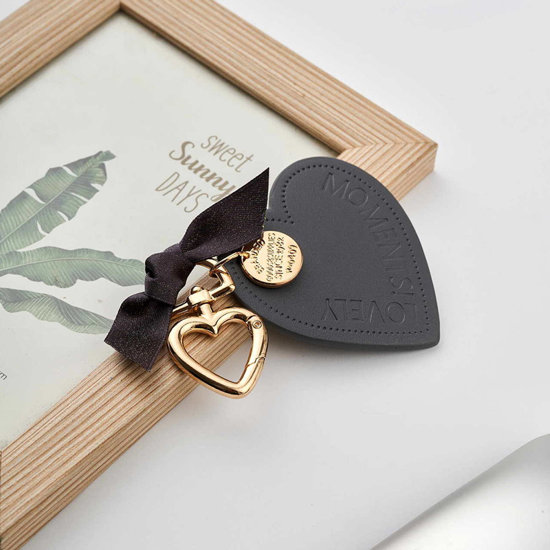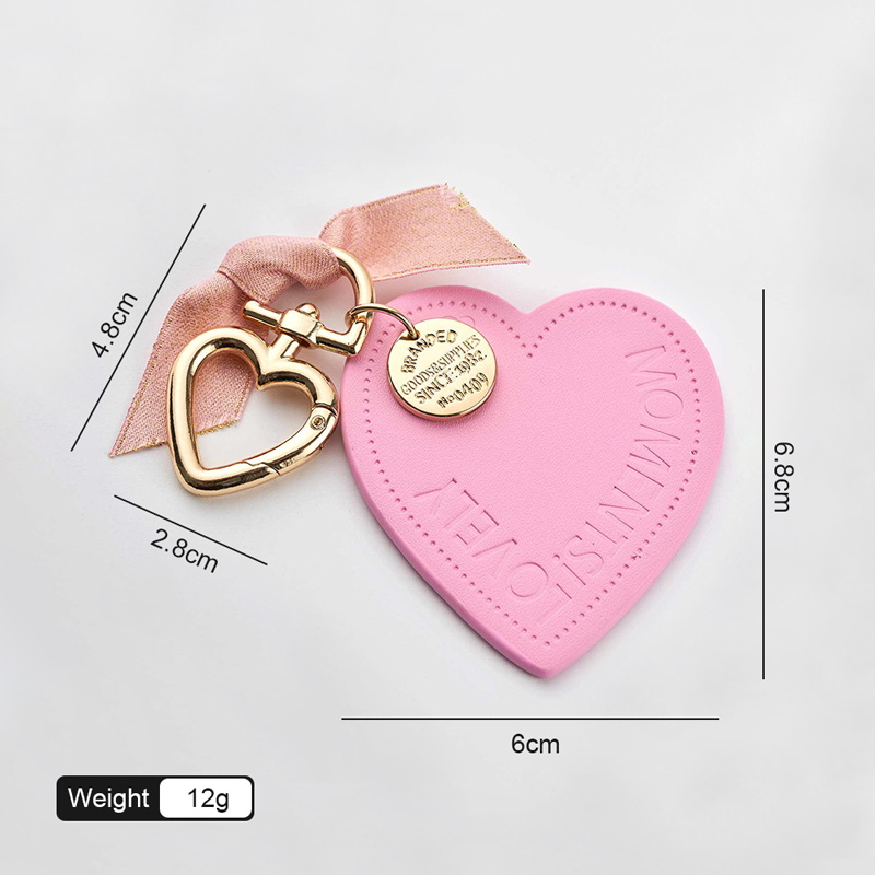 This keychain set features heart-shaped leather charms in colors like navy, pink, gray, and black, with gold accents and ribbon details. With a romantic, feminine design, it’s perfect for gifting on Valentine’s Day or as a sweet accessory for bags/keys, appealing to those who love cute, sentimental style in daily life.