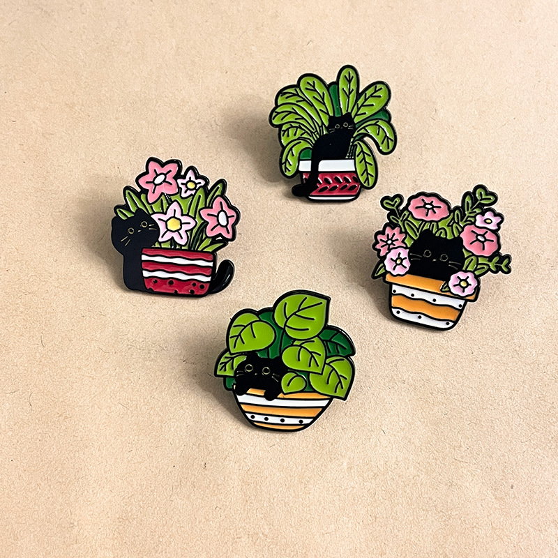 Product : Hidden Black Cat Plant Pot Enamel Pin