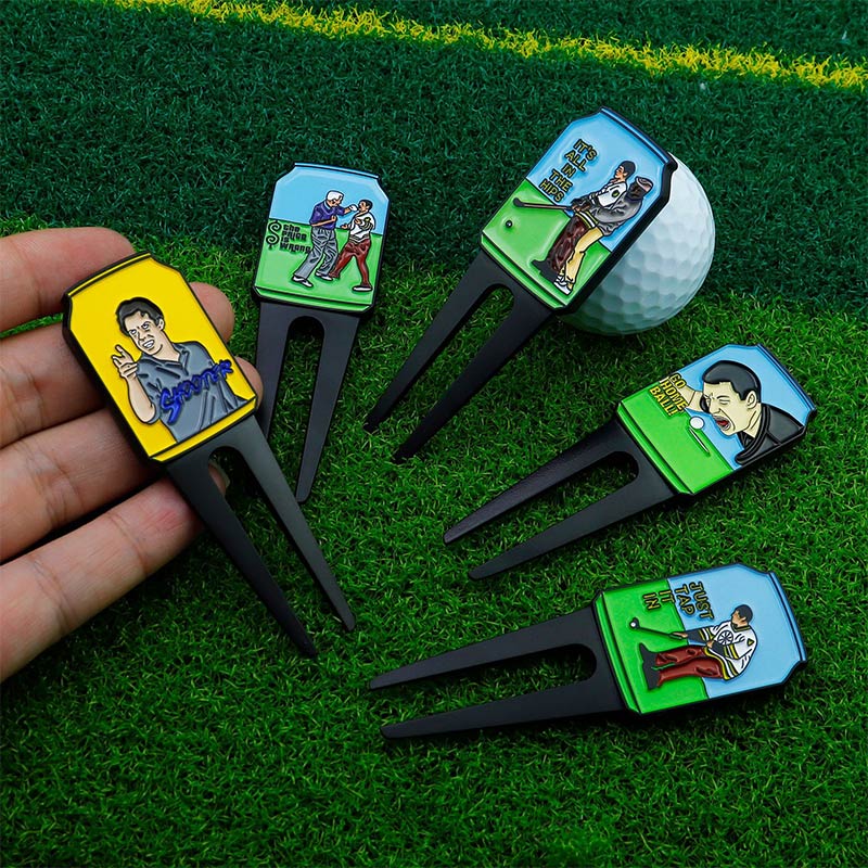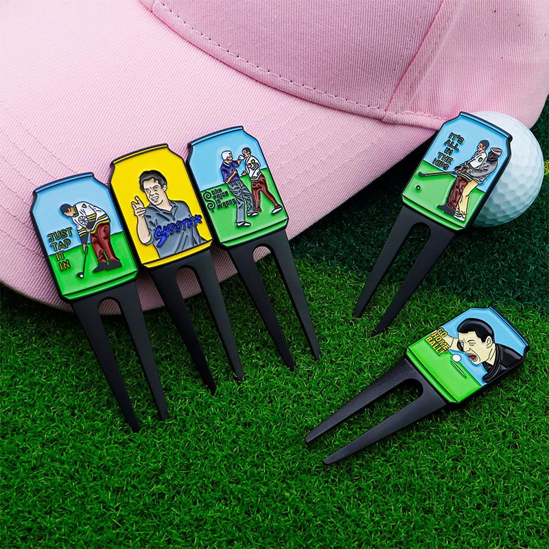 Boasting playful themed graphics & funny golf slogans, these sturdy divot tools fix course greens smoothly. They double as quirky on-course accessories—perfect for adding personality to your gear or gifting to fun-loving golf enthusiasts.