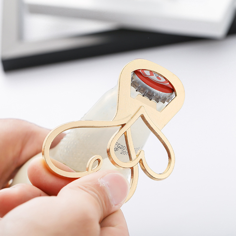 This 40g (10cm) opener features interlocked double hearts in a shiny gold finish. It pops caps smoothly, blending romantic symbolism with sleek decor style—ideal for anniversaries, engagement parties, or a heartfelt gift for love-themed home accents.