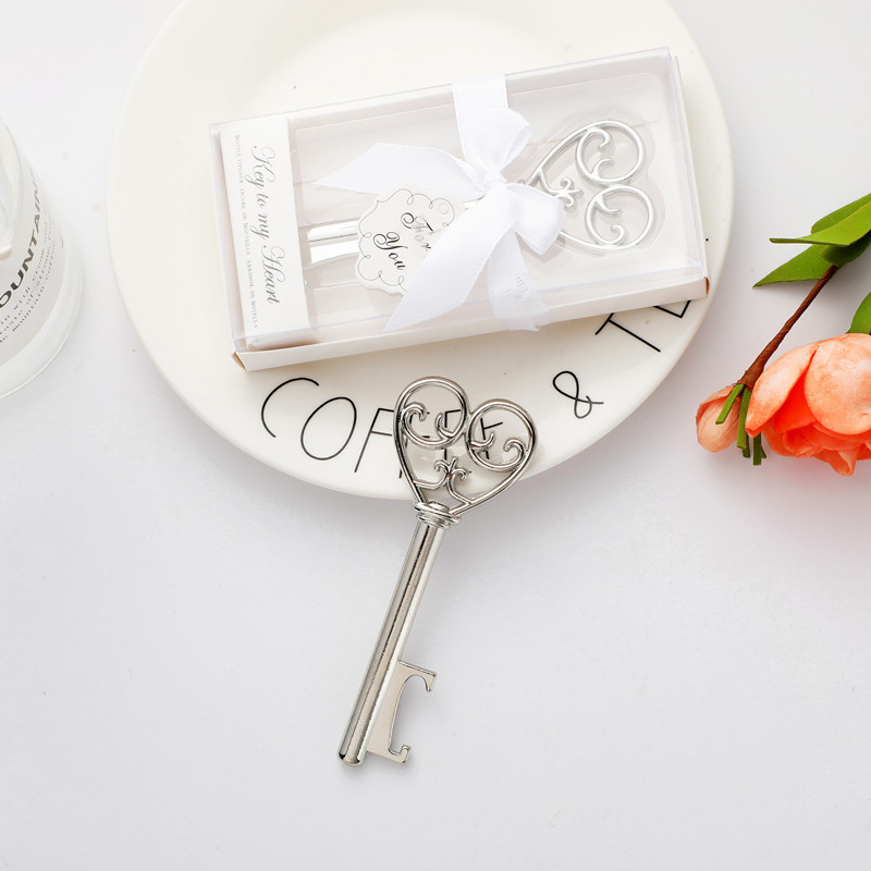 This 41g (10cm) silver opener mimics a decorative key with an ornate heart-shaped handle, etched with "Key to my Heart." It pops caps smoothly, blending romantic charm with vintage elegance—ideal for weddings, anniversary parties, or a heartfelt gift for loved ones.