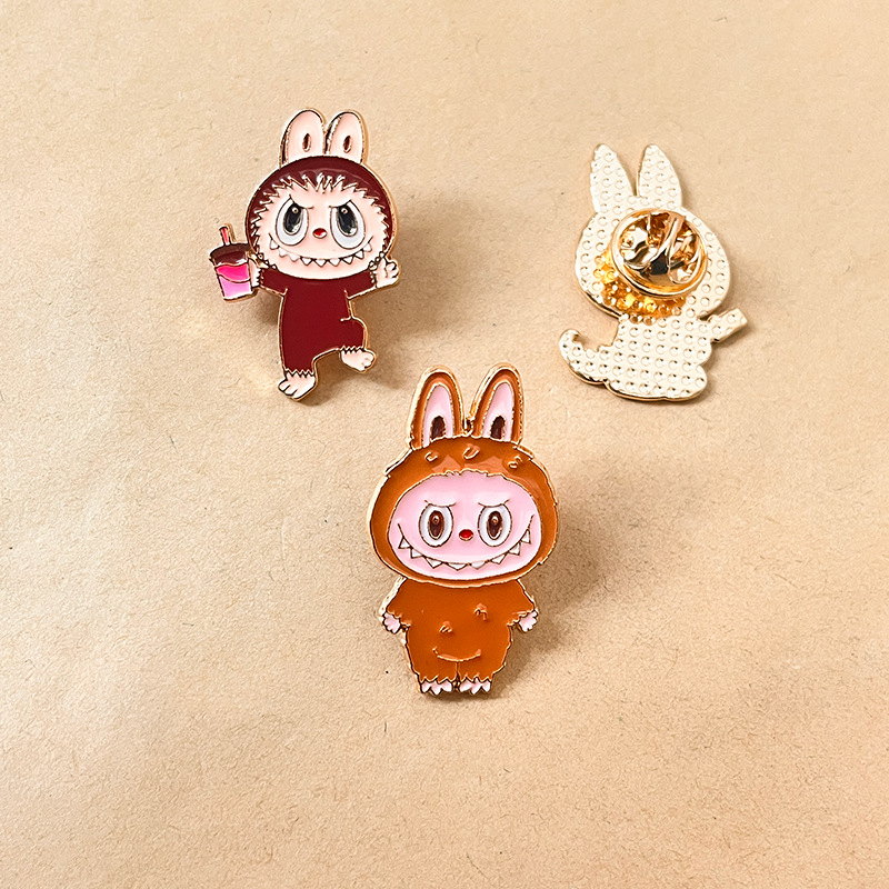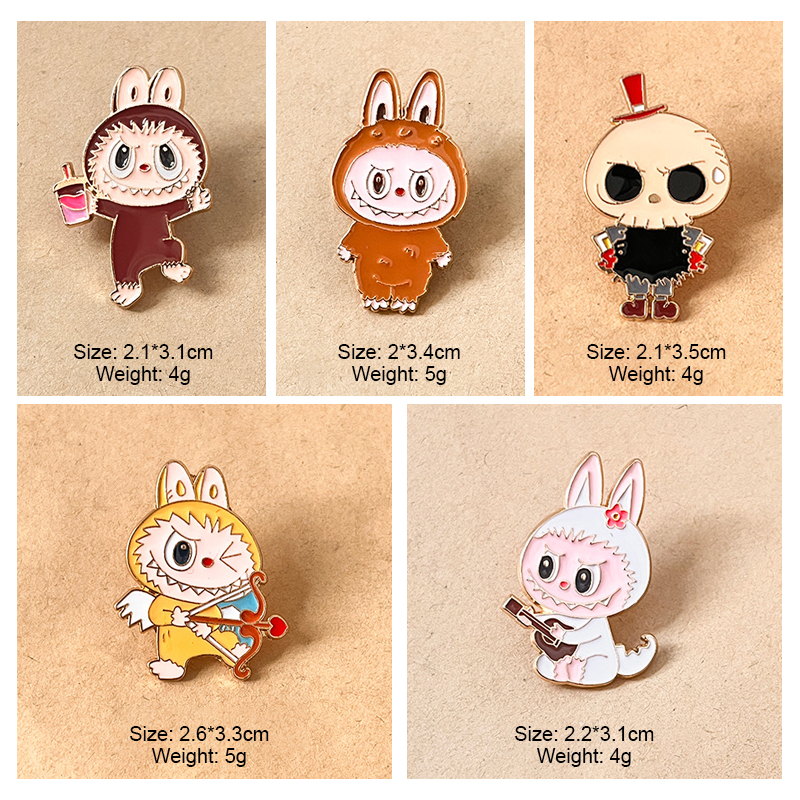 Official Labubu designs with expressive bunny-suit characters (props like instruments/arrows) in bold hues. Premium enamel with crisp details—ideal for decorating bags/jackets, adding playful, iconic charm for Labubu fans.