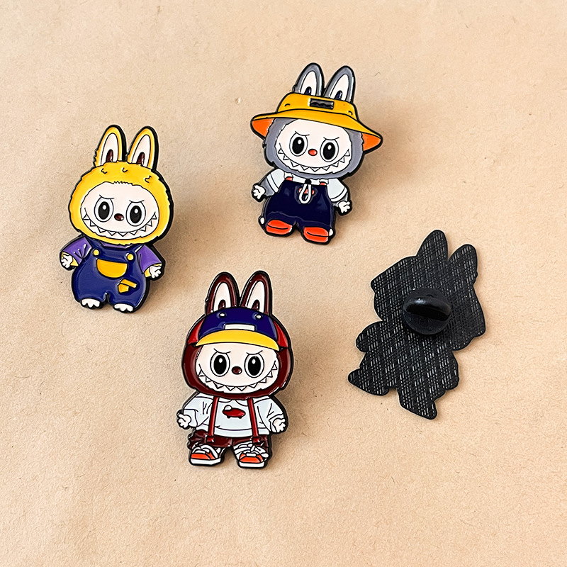 These Labubu pins take the iconic bunny-eared shark shape, with varied trendy outfits (hats, overalls) and vivid, cute details. They decorate caps or bags, adding playful charm—ideal for cute-style lovers to spruce up accessories with adorable flair.