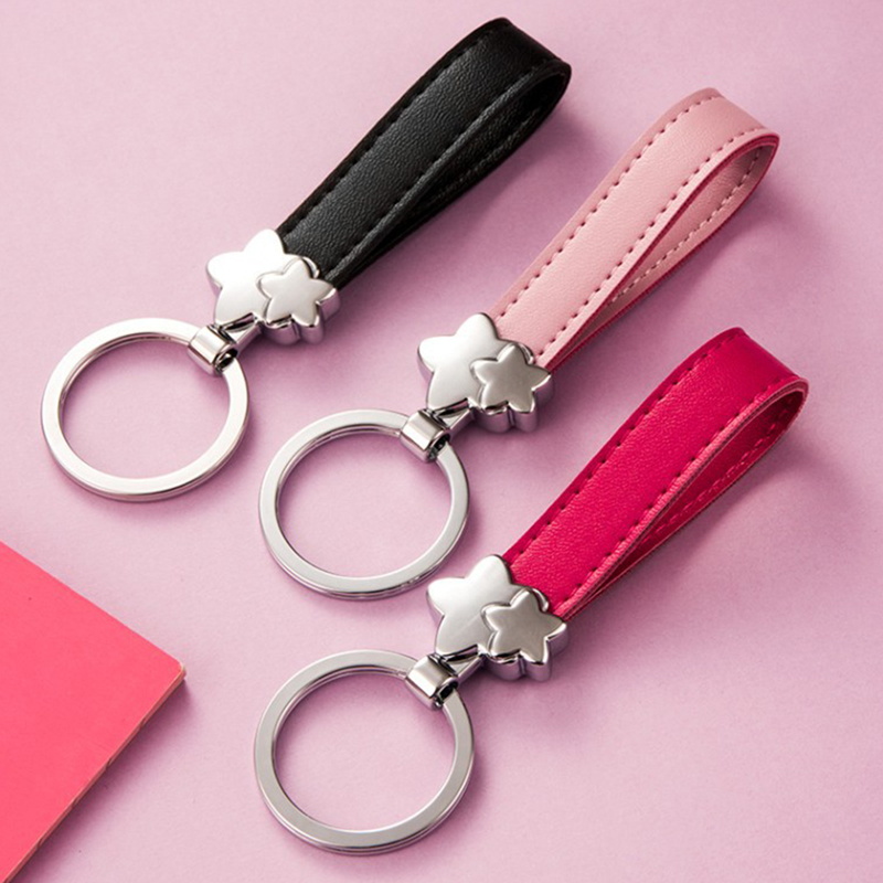 Made of leather (black, pink, red) and metal, these keychains feature star designs with metal rings. They’re perfect for organizing keys, adding a stylish, minimalist touch, and are ideal for daily use in trend-focused and accessory-loving lifestyles.