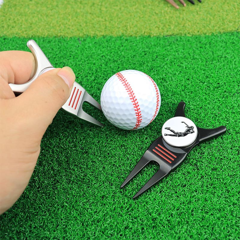 Sturdy metal divot tool fixes course greens effortlessly, with removable magnetic markers boasting male/female golfer graphics. Compact, bag-friendly, and functional—it’s perfect for daily rounds or gifting to golf lovers of any gender.