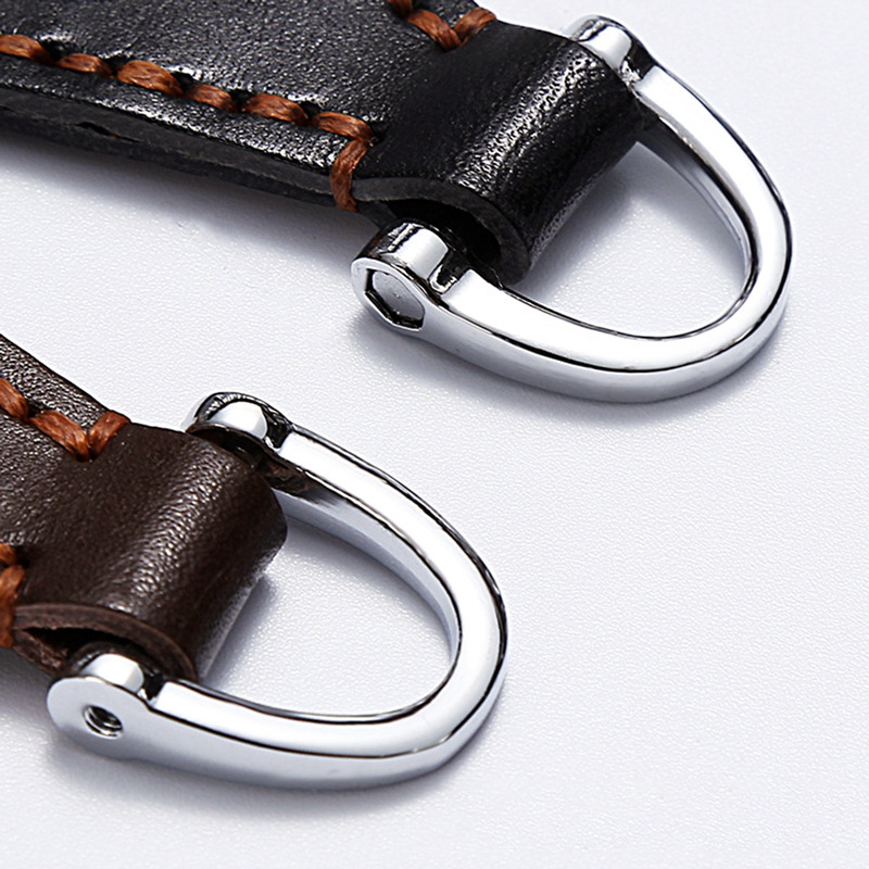These leather metal keychains feature premium genuine leather in black and brown, with meticulous brown stitching and sturdy metal clasps, showcasing exquisite craftsmanship and durable materials for a stylish, long-lasting key organizing solution.